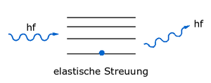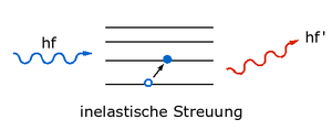 يوصف التشتت الغير مرن أحيانا بأنه تشتت رامان ، وهو يحدث عندما تزيد طاقة الفوتون الساقط عن الفرق بين مستويين للطاقة الكمومية في الذرة ، بحيث ترتفع طاقة الإلكترون بمقدار . عندئذ تصبح طاقة الفوتون الصادر من الذرة .