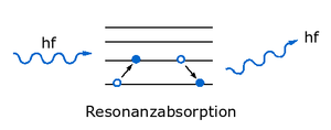 عندما تعادل طاقة الفوتون الساقط على الذرة الفرق بالتمام , بين مستويين للطاقة في الذرة فإن الذرة تمتص الفوتون على التو . فإذا تبع ذلك إصدار لفوتون بنفس التردد يسمى ذلك التعامل (تفاعل) امتصاص رنيني . وتختلف تلك العملية عن ما يحدث في حالة التشتت المرن في أن الفوتونين يكونان منزاحان الطور.
