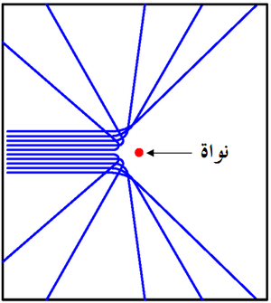 بينت التجارب التي أجريت على الجسيمات دون الذرية أن قوى التنافر الكهربائية بين الجسيمات تخضع لقانون كولوم، الذي ينص على أن القوة تتناسب عكسيا مع مربع المسافة بين الجسيمات . أي أن المسافة إذا قسمت إلى النصف فإن قوى المتبادلة تتضاعف أربع مرات[1]. أظهرت النتائج، كما في الشكل الجانبي، أن مسار الجسيم المبعثر، مهما كانت زاوية انحرافه، سيكون وفق قطع زائد حيث كلما اقتربت الجسيمات الساقطة على مركز التشتت ازدادت زاوية الانحراف.[1]