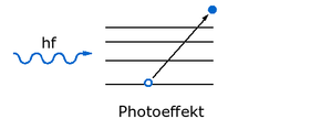 وهي عملية امتصاص يكتسب خلالها أحد إلكترونات الذرة الطاقة الكاملة من الفوتون الساقط ، وتسمى التأثير الكهروضوئي الذي اكتشفة ألبرت أينشتاين. ومن شروط حدوثه أن يكون الإلكترون مرتبطا بالذرة ارتباطا وثيقا ، ولذلك يتميز حدوث التأثير الكهرضوئي مع إلكترونات المدار K في الذرات الثقيلة.