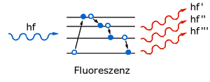 إما إذا عادت الذرة من الحالة المثارة إلى حالة الابتدائية بعد فترة زمنية قصيرة فيسمى هذا النوع من التفاعل اصدار تلقائي . وإذا عادت الحالة المثارة للذرة على فترات بحيث تعبر عدة مستويات للطاقة وفي كل مرة تصدر فوتونا ، فإن ذلك يسمى فلورية . وعندما يستغرق ذلك مدة طويلة (ساعة أو أكثر ) فيسمى ذلك التآثر بين الفوتون والذرة فسفورية.