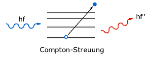 يسمى تأثير كومبتون تلك العملية التي تؤدي إلى اكتساب الذرة طاقة عالية من الفوتون بحيث تتأين وتطلق إلكترونا وفوتونا ذا طاقة أقل.