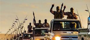 مقاتلون على سيارات تويوتا استعداداً لهجوم في جنوب ليبيا.