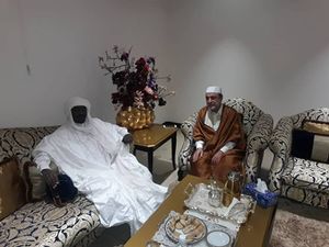 يمين: عبد الرحمن السويحلي، الرئيس السابق لمجلس الدولة الليبي، يسار: السلطان أحمد الأول، 4 ديسمبر 2018.