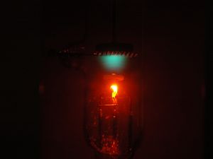 يمكن استخدتم ام غاز النيون بدلا من غاز الزئبق. وتزيد هنا طاقة الإثارة لذرات النيون - فهي تبلغ 4و18 إلكترون فولت و 0و19 إلكترون فولت - كما تحدث إثارة للذرات أيضا بين 6و16 و 9و16 إلكترون فولت. فتصدر ذرات النيون المثارة فوتونات ذات طاقة قليلة مما يجعل الضوء الصادر في نطاق الضوء المرئي - نطاق الضوء الأحمر والبرتقالي .[2]. وعندما يزداد الجهد الكهربائي المستخدم إلى ضعف جهد الإثارة ، فيصبح من الممكن رؤية عدة حيوز مضيئة متجاورة في الأنبوب.