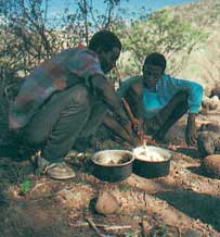 بفضل وسائل إعداد الطعام سهلة الحمل ومبردات الماء العازلة للحرارة، يستطيع المخيمون إعداد أصناف متنوعة من الطعام. ويجب على كل شخص أن يحمل طقم مائدة كاملاً بما في ذلك أواني الأكل. ويأخذ كثير من رواد المخيمات الأطعمة المجففة (المجمدة) التي يسهل طبخها بصب الماء الساخن عليها. وبعضهم يعد الطعام قبل وقت كاف ويضعه في أكياس بلاستيكية موضحًا عليها محتوياتها.