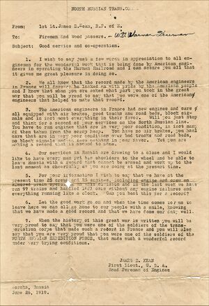 Letter written by U.S. Army 1LT James E. Kean highlighting his unit's mission in Russia – June 26, 1919