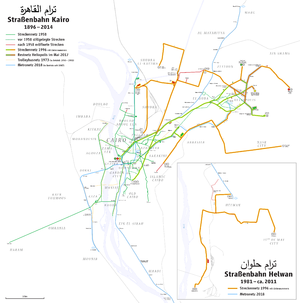 4. ^ "قصة الترام في مصر". الذاكرة المصرية. 2011-03-14. Retrieved 2019-05-30.