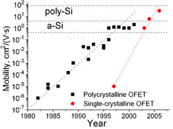 تطور حركة الحامل في ترانزستور تأثير المجال العضوي.[4]