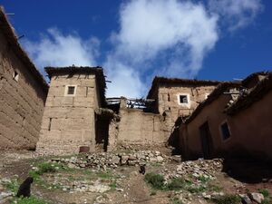 Rammed earth construction was both practically and ideologically important during the rapid construction of the Daqing oil field and the related development of Daqing.[21] The "Daqing Spirit" represented deep personal commitment in pursuing national goals, self-sufficient and frugal living, and urban-rural integrated land use.[22] Daqing's urban-rural landscape was said to embody the ideal communist society described by Karl Marx because it eliminated (1) the gap between town and country, (2) the gap between workers and peasants, and (3) the gap between manual and mental labor.[22]