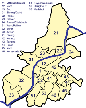 The districts of Trier with area and inhabitants (December 31, 2009):