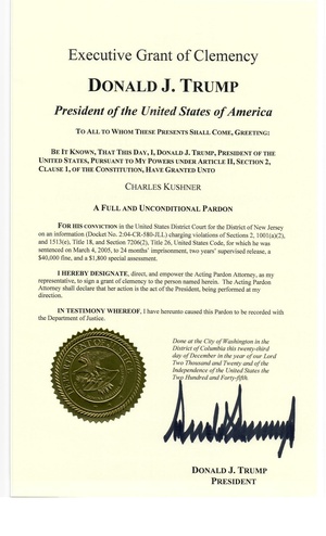 - ^ "Trump pardons Jared Kushner's father". December 29, 2020.