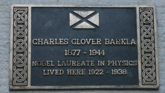A plaque exists on Barkla's house at Hermitage of Braid in Edinburgh. A commemorative plaque has been installed in the vicinity of the Canongate, near the Faculty of Education Buildings, at the University of Edinburgh. Additionally, a lecture theatre at the University of Liverpool's Physics department, as well as a Biophysics laboratory in the Biological science department,[4] are named after him. In 2012 a gritter in Barkla's home town of Widnes was named in his honour, following a competition run by the local newspaper.[5]