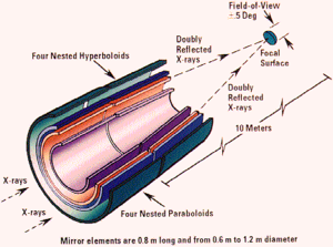 - تلسكوب من نوع تلسكوب ولتر ، ونظرا لعدم إمكانية العدسات أو المرايا البصرية العمل مع أشعة إكس ، فنوع تلسكوب ولتر هو المناسب ، وهو يتكون من أنابيب مخروطية معدنية متداخلة (تشبه البصلة الخضراء) تعمل على عكس الأشعة السينية عكسا كليا داخلها وتجميعها في بؤرة وبالتالي يمكنها تصوير الأجرام السماوية التي تشع أشعة إكس و أشعة غاما.