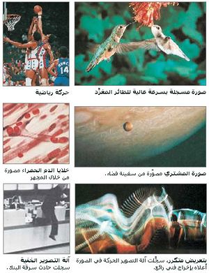 وبإمكان آلات التصوير أيضًا أن ترى أحداثًا بطريقة قد لاتستطيع العين رؤيتها. فآلات التصوير العالية السرعة تسجل الحركة التي تحدث بسرعة كبيرة، بينما نراها نحن غير ظاهرة. ومن خلال هذه النوعية من التصوير يختبر العلماء الأجزاء المتحركة من الآلات، ويدرسون حركة الطيور المغردة أثناء تحليقها. ونوعيات أخرى من آلات التصوير يمكنها الإسراع بالعمليات البطيئة كنمو النباتات أو تفتُّح زهرة الشرنقة التي تحدث ببطء شديد لايمكن ملاحظته.