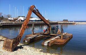The nature of dredging operations and possible environmental impacts requires that the activity often be closely regulated and requires comprehensive regional environmental impact assessments alongside continuous monitoring.[36] For example, in the U.S., the Clean Water Act requires that any discharge of dredged or fill materials into "waters of the United States," including wetlands, is forbidden unless authorized by a permit issued by the Army Corps of Engineers.[41] Due to potential environmental impacts, dredging is often restricted to licensed areas, with vessel activity monitored closely using automatic GPS systems.[36] Town Of Oyster Bay v. Commander Oil Corporation, Court of Appeals of New York (2001) , showed a case in which the dredger had received a permit from the Army Corps of Engineers preventing the nearby city (Town Of Oyster Bay) to stop the dredging.