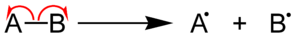 ويطلق على الطاقة المستخدمة في هذه العملية طاقة تفكك رابطة. كما أن انقسام الرابطة بطريقة غير متماثلة أيضا وارد في عملية تسمى تكسر غير متماثل.