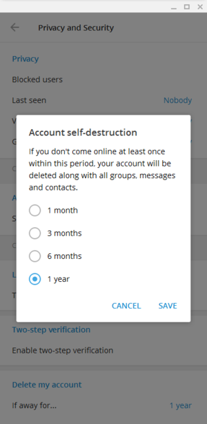 خاصيّة التدمير الذاتي للحساب في حالة ما لم ينشط المستخدم حسب المدة التي يُحدّدها هو