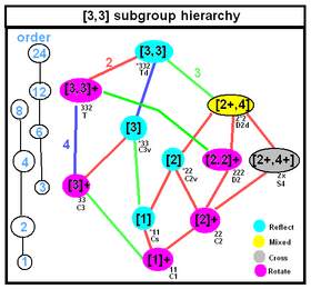 ![]() تماثل رباعي الأوجه Td, (*332) [3,3] = ![]() ![]() ![]() ![]() ![]() |