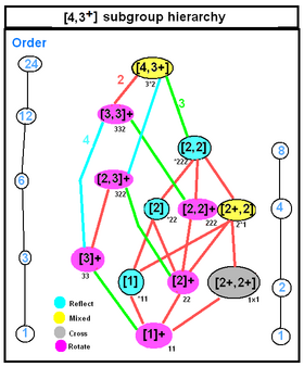![]() تماثل ثماني الأوجه Oh, (*432) [4,3] = ![]() ![]() ![]() ![]() ![]() |