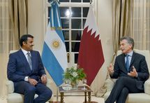 حمد آل ثاني برفقة الرئيس الأرجنتيني موريسيو ماكري في القصر الرئاسي في أوليڤوس، بيونس آيرس، يوليو 2016.