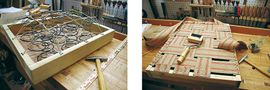 تتم هذه العملية باستعمال المبرَد الخشن ثم الناعم لتدوير أطراف الخشب والإطارات المستعملة في صناعة الهيكل، ثم تنعيمها لئلا تتسبب في تمزق طبقات التغطية وإتلافها لدى شدها.