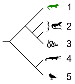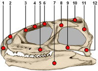 Cladogram showing relationships of extant members of the Sauria.[2] Numbered items are: