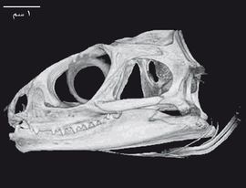 جمجمة تواتارا، تظهر الأقواس الصدغية بالكامل، والعظام المنفردة: