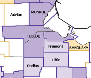 ![]() Images, from top left to right: Downtown Toledo, University Hall, Toledo Museum of Art, Lucas County Courthouse, Tony Packo's Cafe, Anthony Wayne Bridge, Fifth Third Field | |
