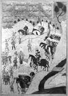 - ^ في الخلفية (الأسطول العثماني) للرسام الإسپاني لا گولتا (بالعربية: حلق النهر أو حلق الوادي). بينهما توجد بحرية تونس (البحيرة). في أعلى الرسم، في خلفية البحيرة والحقول الخضراء، نرى مدينة تونس.