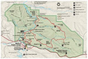 Both main units of the park have scenic drives, approximately 100 ميل (160 km) of foot and horse trails, wildlife viewing, and back country hiking and camping. The park received 850,000 recreational visitors in 2021.[2]