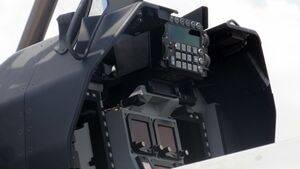 The T-50 is equipped with a Honeywell H-764G embedded global positioning/inertial navigation system and HG9550 radar altimeter.[11] The aircraft is the first trainer to feature triple-redundant digital fly-by-wire controls.[42] The cockpit panels, switches, and joysticks are produced by South Korea's FirsTec and Sungjin Techwin, head-up display by DoDaaM Systems, and multi-function display by Samsung Thales.[61][63][64][65] Other South Korean subcontractors such as Elemech, Dawin Friction, and Withus cooperate in T-50 components production.[66] Hanwha supplies the mechanical parts for the flight control system,[67] and WIA supplies the undercarriage.[68]