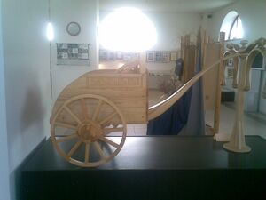 The Andronovo dead were buried in timber or stone chambers under both round and rectangular kurgans (tumuli). Burials were accompanied by livestock, wheeled vehicles, cheek-pieces for horses, and weapons, ceramics and ornaments. Among the most notable remains are the burials of chariots, dating from around 2000 BC and possibly earlier. The chariots are found with paired horse-teams, and the ritual burial of the horse in a "head and hooves" cult has also been found.[4] Some Andronovo dead were buried in pairs, of adults or adult and child.[28]