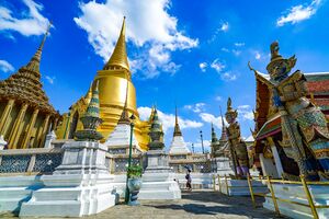 Wat Phra Kaew, an example of early Rattanakosin period architecture located in Bangkok's historic Rattanakosin Island.
