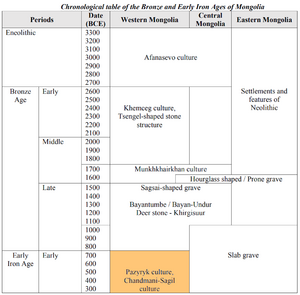 - ^ Murphy, Eileen M. (2003). "Iron Age Archaeology and Trauma from Aymyrlyg South Siberia: An examination of the health diet and lifestyles of the two Iron Age populations buried at the cemetery complex of Aymyrlyg". BAR International Series.