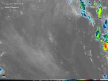 The volcanic explosion caused atmospheric shockwaves to propagate around the globe. Satellites visually captured shockwaves propagating across the Pacific Ocean and a very wide eruption column.[39] The pressure wave was measured by weather stations in many locations, including New Zealand to a maximum amplitude of about 7 hPa,[41] and Australia to 6.9 hPa at Lord Howe Island and 3.3 hPa at Perth.[42][43][44][45] Even in Europe, a pressure fluctuation of 2.5 hPa was measured in Switzerland,[46] and of just over 2 hPa when it reached the United Kingdom.[47] Shockwaves were reported as having gone around the Earth as many as four times in Japan and Utah,[48][49] and at least twice at the Blue Hill Meteorological Observatory in Massachusetts.[50] The pressure shockwave was also observed in Chennai, India, which is 12,000 km from the eruption site.[51]