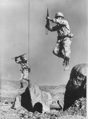 ![]() قوات ملكية يمنية في محاولة لصد هجوم مدرعة مصرية. | |||||||