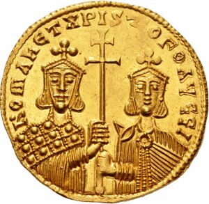 Nothing is known of her background except for the fact that she was born into a family of Greek peasants.[1] She became the mother-in-law to Constantine VII in May or June, 919 with the marriage of the young Emperor to her daughter Helena Lekapene. Her husband Romanos was originally the Droungarios of the Fleet, before rising to become the de facto regent of the Empire after the marriage, when he was proclaimed basileopatōr. In September 920, Romanos was invested as kaisar. On 17 December 920, Romanos was crowned co-emperor and in effect became the senior of the two associate emperors. Theodora was crowned as Augusta in January 921. She remained in the position until her death a year later.