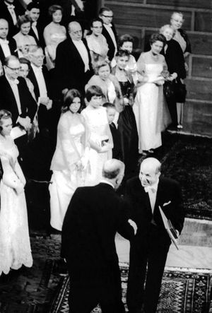 - ^ أ ب "The Nobel Prize Award Ceremonies", nobelprize.org, accessed 5 November 2007.