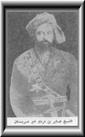 أمير المحمرة والأراضي التابعة شيخ مشايخ بني كعب رئيس اتحاد المحيسن | |||||