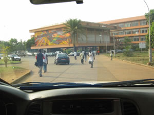 حرم جامعة جمال عبد الناصر إلى اليسار. وإلى اليمين استاد 28 سبتمبر في كوناكري 2004.