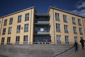 The foundation for the university was laid in the 1970s by an act of the Swedish Parliament. The university was established in 1977. In its first year, the university offered 300 educational places. University status was achieved in 1983.[3] The university moved to new premises in the mid-1980s to accommodate for a growing student body. The new campus was housed in the barracks of the former Göta Logistic Corps (T 2) in central Skövde. In the following decade, new buildings were added to the campus as the university grew in student count and the integration of the, until then, separate School of Health Sciences (Swedish: Hälsohögskolan) as the Institute for Health Sciences.[4] In later years, the university has established itself as a modern higher education institution with programmes video game development,[5][6] bioinformatics,[7] and data science.[8] Something that has contributed to establishing Skövde and the university as a hub for Swedish computer game development with initiatives like Sweden Game Arena, and for research and development in IT with initiatives like the start-up incubator Science Park Skövde, considered to be an interface for science and local business.