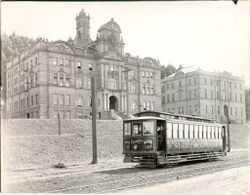 Initially, the three Affiliated Colleges were located at different sites around San Francisco, but near the end of the 19th Century interest in bringing them together grew. To make this possible, San Francisco Mayor Adolph Sutro donated 13 acres in Parnassus Heights at the base of Mount Parnassus (now known as Mount Sutro). The new site, overlooking Golden Gate Park, opened in the fall of 1898, with the construction of the new Affiliated Colleges buildings. The school's first female student, Lucy Wanzer, graduated in 1876, after having to appeal to the UC Board of Regents to gain admission in 1873.[23][24]