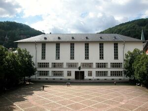 Since Heidelberg was spared from destruction during World War II, the reconstruction of the university was realized rather quickly. With the foundation of the Collegium Academicum, Heidelberg University became the home of Germany's first and, until today, only self-governed student hall. Newly laid statutes obliged the university to "The Living Spirit of Truth, Justice and Humanity".[31]