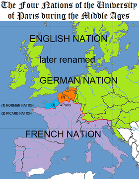 نمت جامعة باريس في الجزء الأخير من القرن الثاني عشر حول كاتدرائية نوتردام بوصفها شركة مماثلة لغيرها من الشركات في القرون الوسطى، مثل نقابات التجار أو الحرفيين.