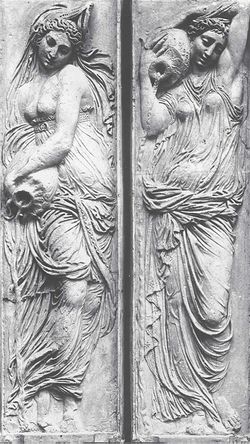- Caryatids (1550–1551) - for the musician's platform in the اللوڤر, these are highly reminiscent of the Erechtheum في أثينا.