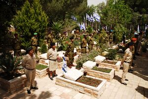 The main Israel Defense Forces cemetery is located on the northern slope of Mt. Herzl. It was established in November 1949, when soldiers who fell in the Jerusalem area were buried there.[3] In 1949, the government decided to turn the site into the main cemetery for IDF members who have fallen in the line of duty. The Israel Police cemetery, for police officers who have fallen in the line of duty, is also located there.