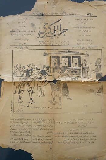 جاء في افتتاحية أحد الأعداد حول الجريدة: "اللهم يا من جعلت الجراب تفكهة لأولي الألباب، وجعلته للحمارة خير خلف لخير سلف وأرحتنا من لبيط الحمارة وصياح الأولاد في الحارة، وجعلت القول خير المأكول، والبصل خير ما حصل، وجعلت كلمتنا فوق كل كلام وسهامنا أشد من ضرب الحسام، هبنا اللهم الصبر على الكردي وجرابه كما ألهمتنا الصبر على نهيق الحمارة وغضب الجار والجارة".