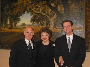 Then-Oakland Mayor Jerry Brown (left) with Senator Dianne Feinstein (middle) and then-San Francisco Supervisor Gavin Newsom (right) in Feinstein's Washington Office. Both were considered possible challengers for Brown in the 2010 Democratic gubernatorial primary.