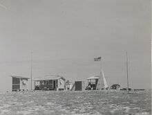 Jarvis was visited by scientists during the International Geophysical Year from July 1957 until November 1958. In January 1958 all scattered building ruins from both the nineteenth century guano diggings and the 1935–1942 colonization attempt were swept away without a trace by a severe storm which lasted several days and was witnessed by the scientists. When the IGY research project ended the island was abandoned again.[31] By the early 1960s a few sheds, a century of accumulated trash, the scientists' house from the late 1950s and a solid, short lighthouse-like day beacon built two decades before were the only signs of human habitation on Jarvis.
